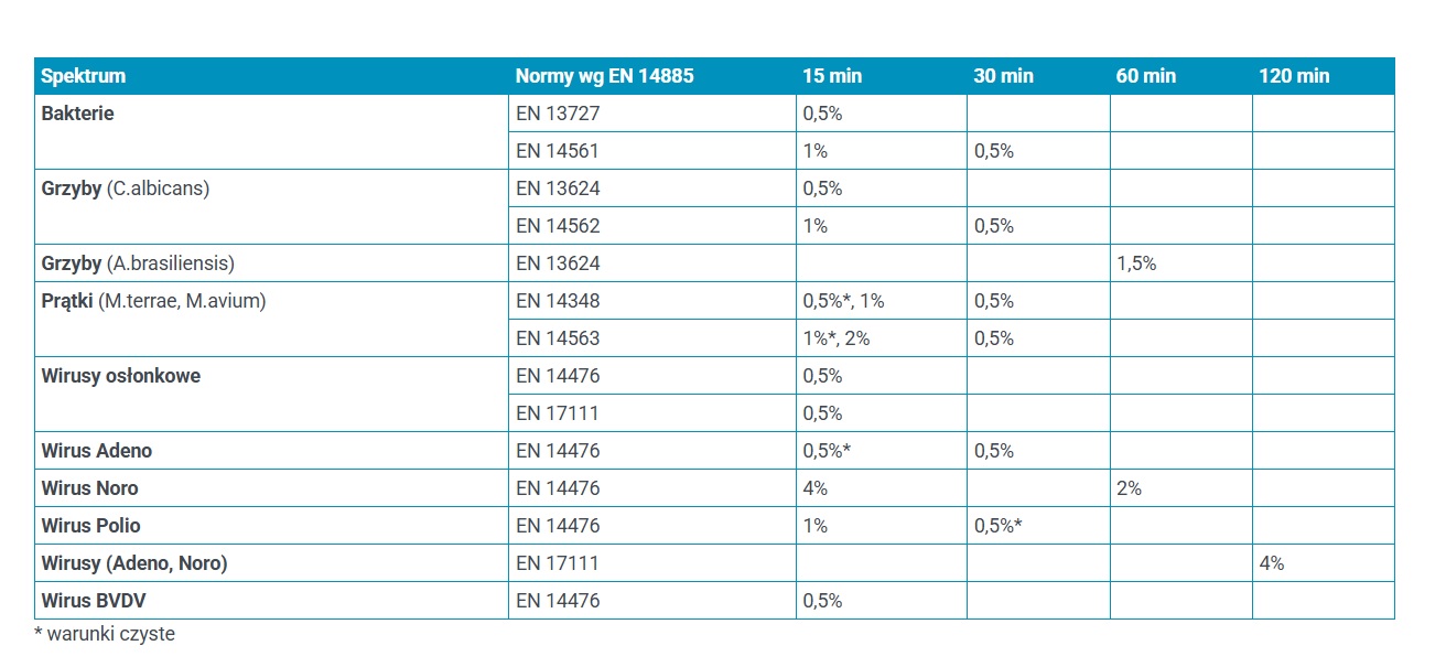 Działa już w stężeniu 0,5% w 15 min