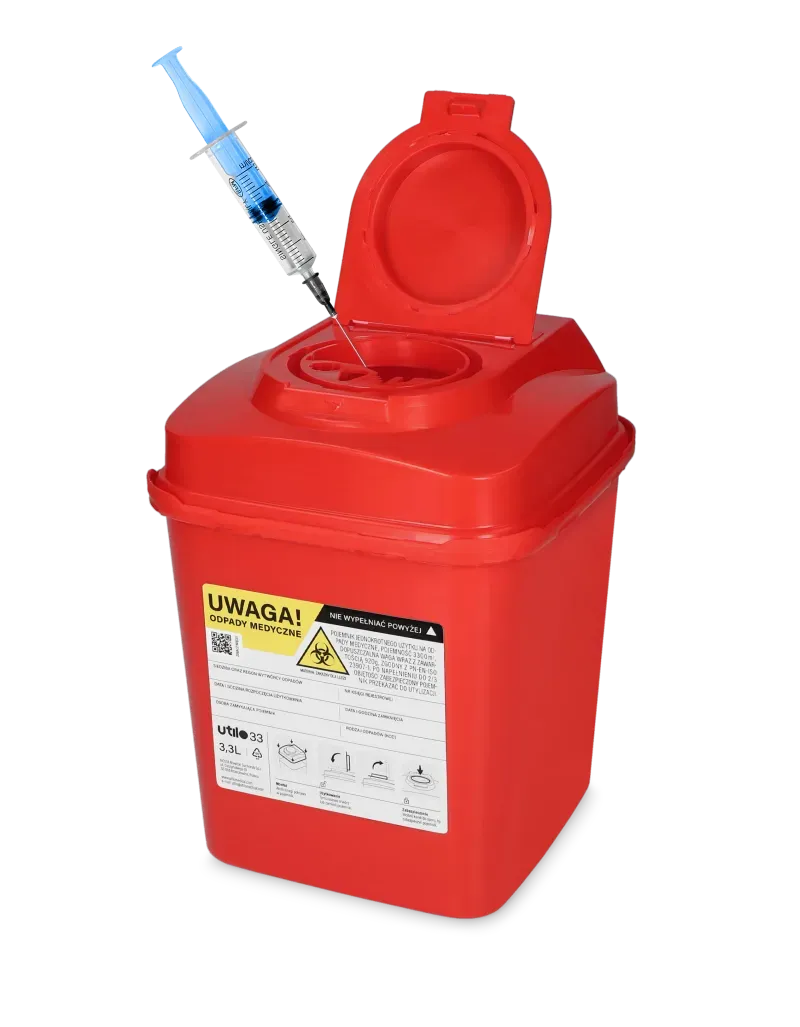 UTILO 2 L to średniej wielkości pojemnik przeznaczony do gromadzenia odpadów medycznych, szczególnie ostrych narzędzi, igieł, ampułek oraz materiałów mogących stwarzać ryzyko zakażenia. Dzięki większej pojemności doskonale sprawdza się w gabinetach o dużej liczbie procedur.