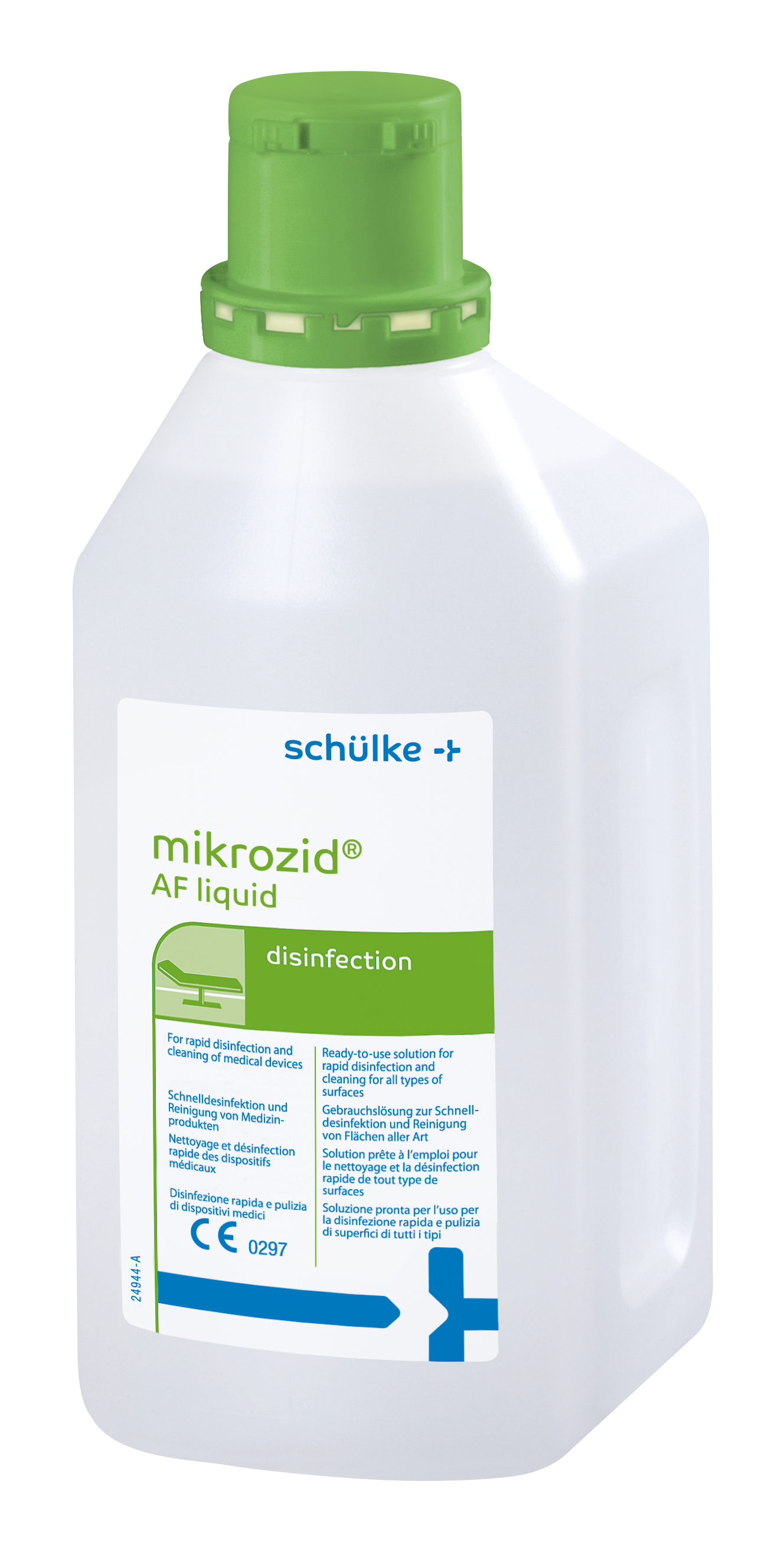 Mikrozid AF jest alkoholowym preparatem przeznaczonym do szybkiej dezynfekcji wyrobów medycznych, które są odporne na działanie alkoholu. Doskonale sprawdzi się jako środek do dezynfekcji końcówek stomatologicznych, zestawów zabiegowych i powierzchni przyrządów medycznych. Środek działa bakteriobójczo (w tym MRSA), drożdżakobójczo i wirusobójczo (BVDV, Vaccina, Rotawirus, Norowirus, Polyoma SV 40).