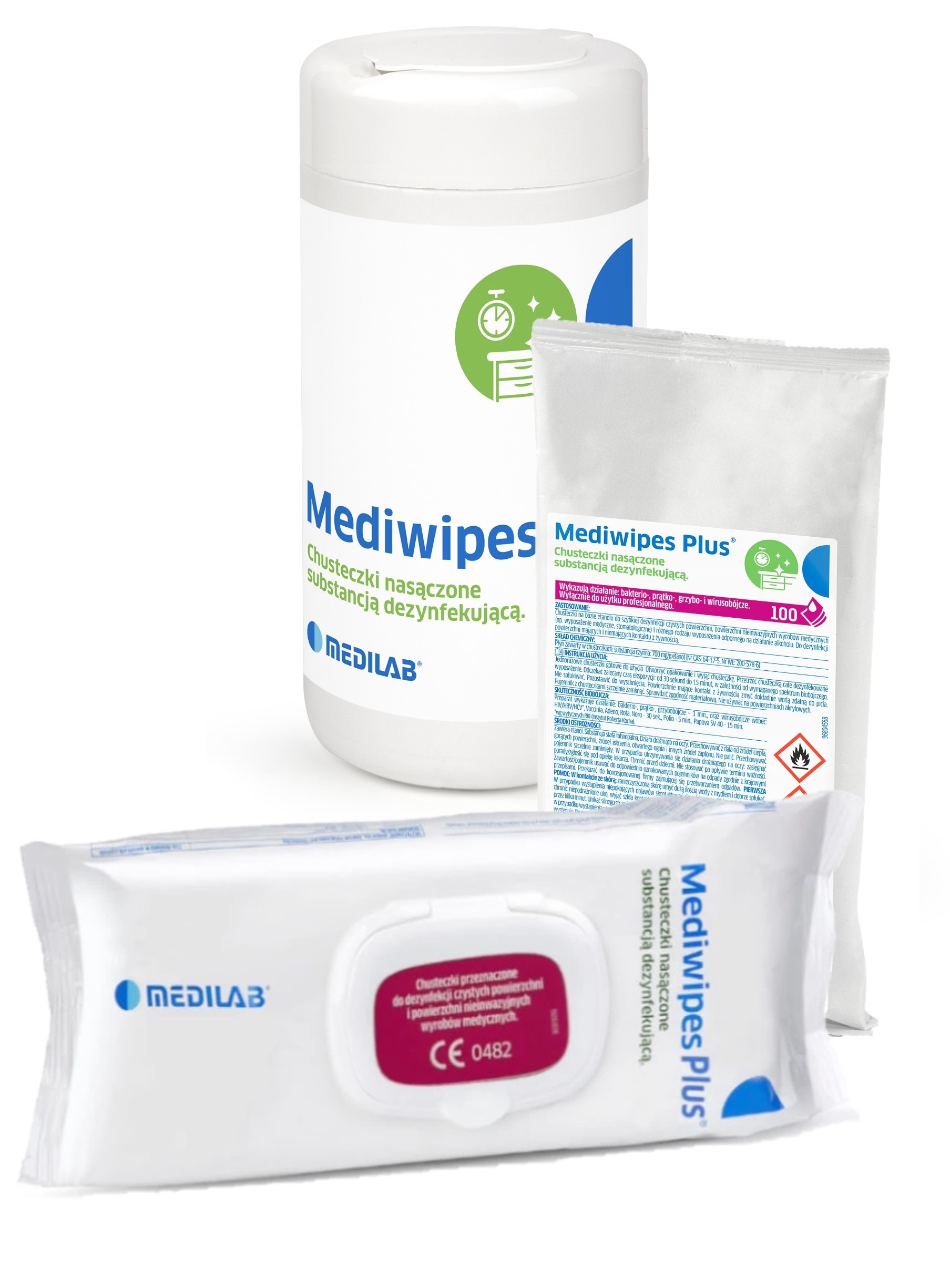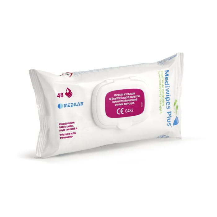 Chusteczki na bazie alkoholu do dezynfekcji powierzchni, powierzchni nieinwazyjnych wyrobów medycznych oraz różnego rodzaju wyposażenia Mediwipes Plus