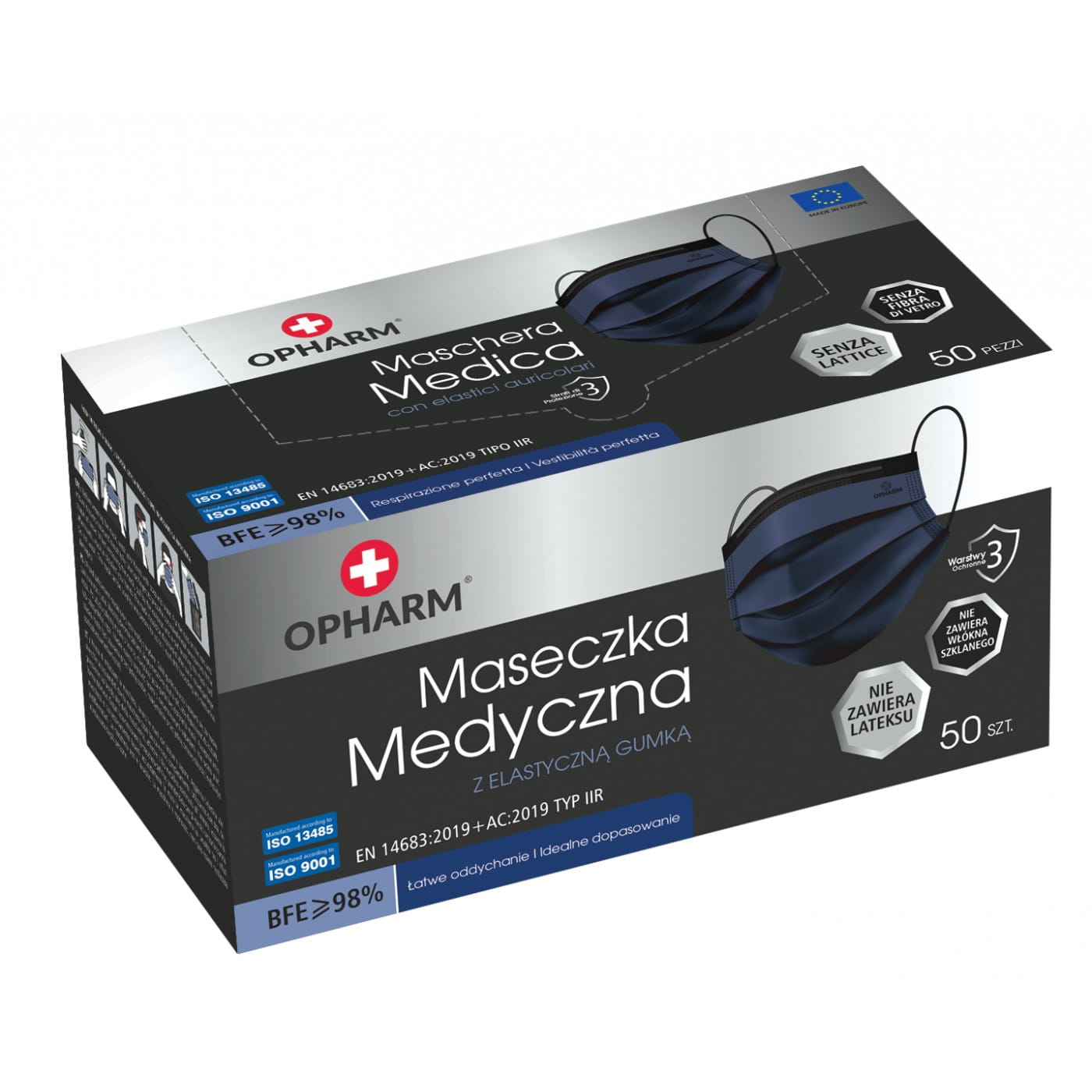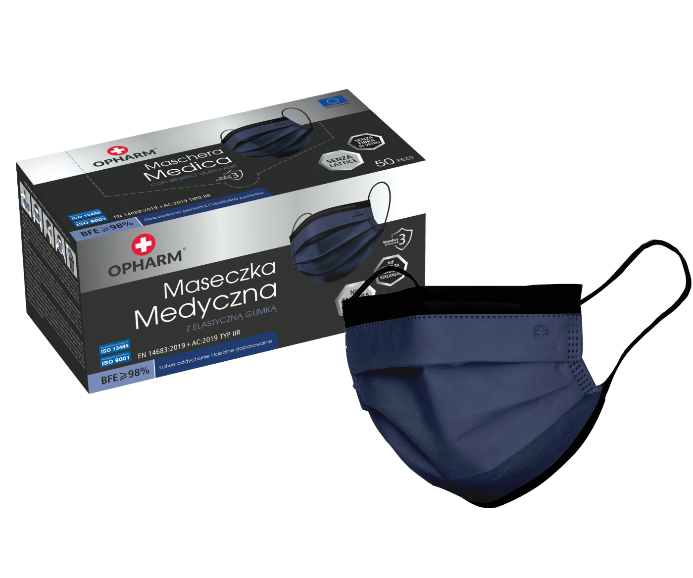 Maski maseczki chirurgiczne granatowe Opharm 50szt.