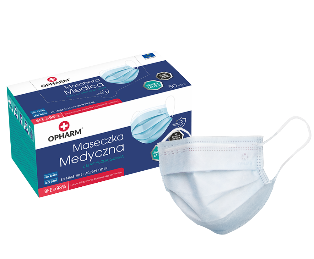 Produkt medyczny zgodny z normą EN:14683:2019, zgłoszony do Urzędu Rejestracji Produktów Leczniczych i Środków Biobójczych.